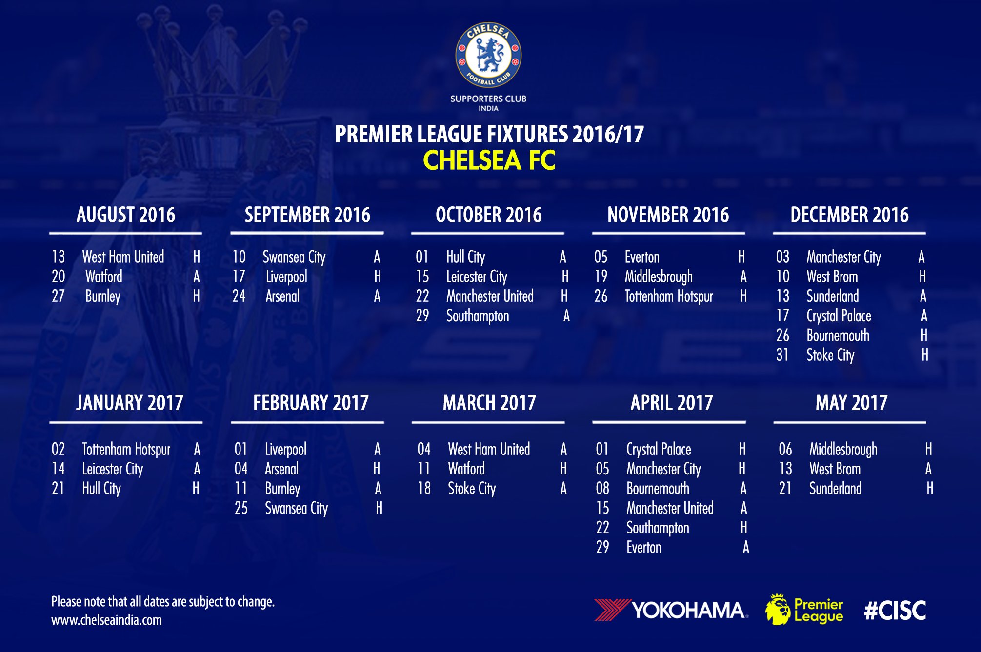 Chelsea India On Twitter Here Are The 2016 17 Chelsea S Premier League Fixtures